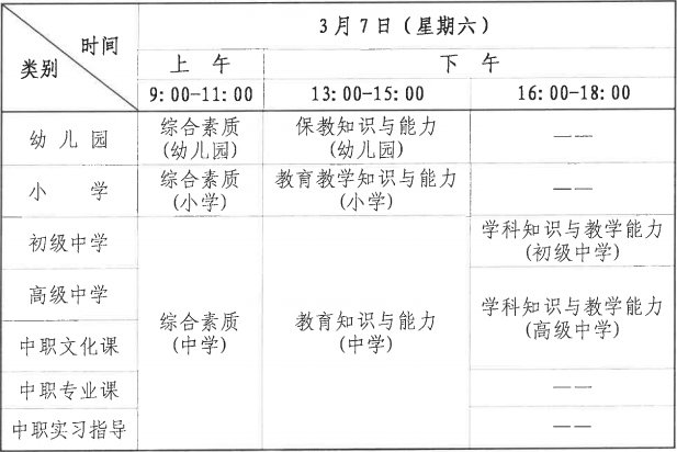 2026年上半年中小学教师资格考试定于2026年3月7日(星期六)进行,具体笔试日程安排表如下: