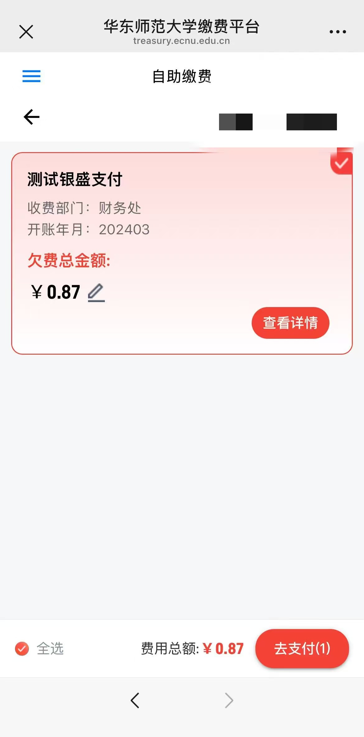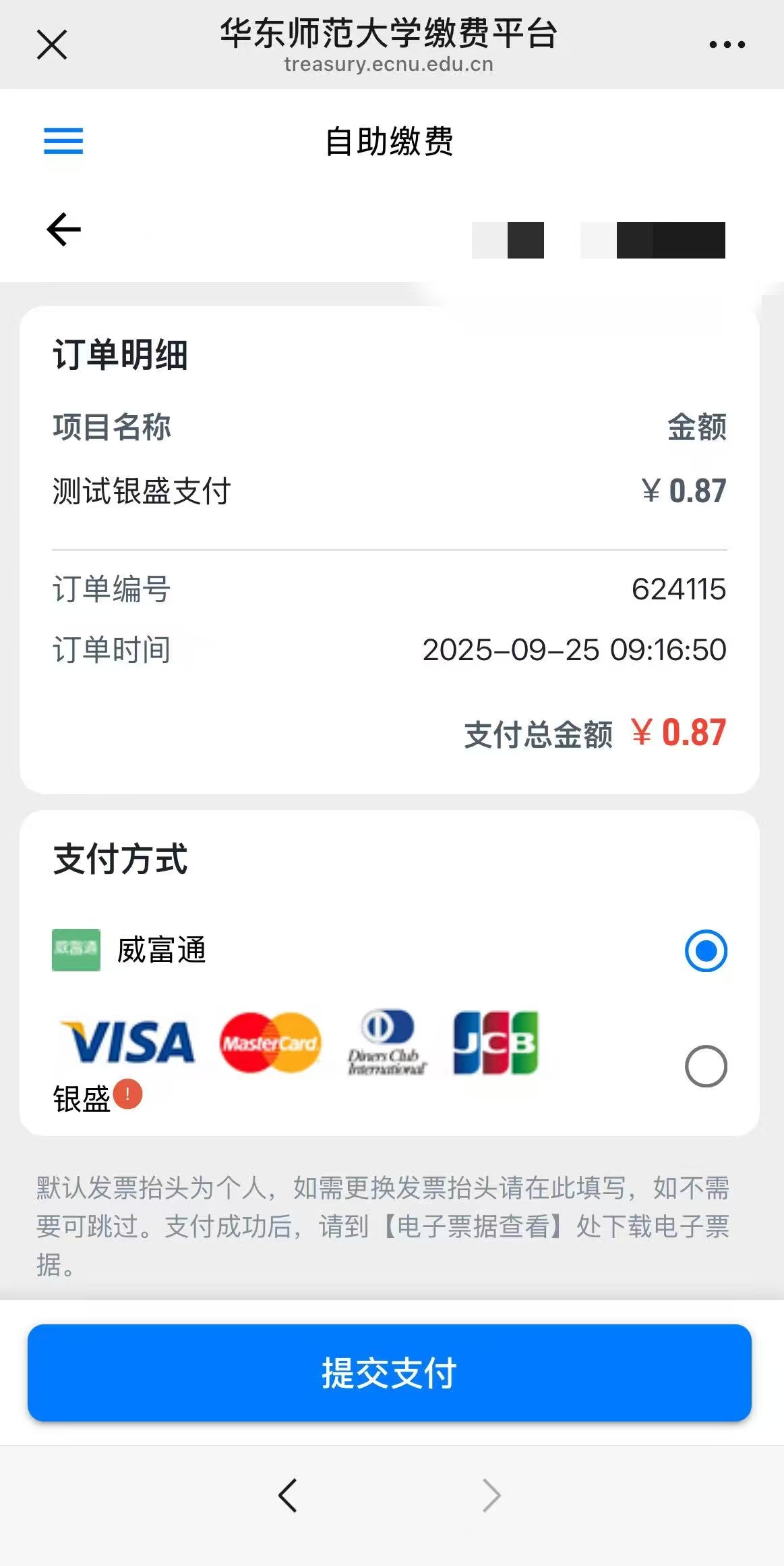 3.收到老师回复邮件后,按照前述缴费流程点击华东师范大学收费平台缴费。