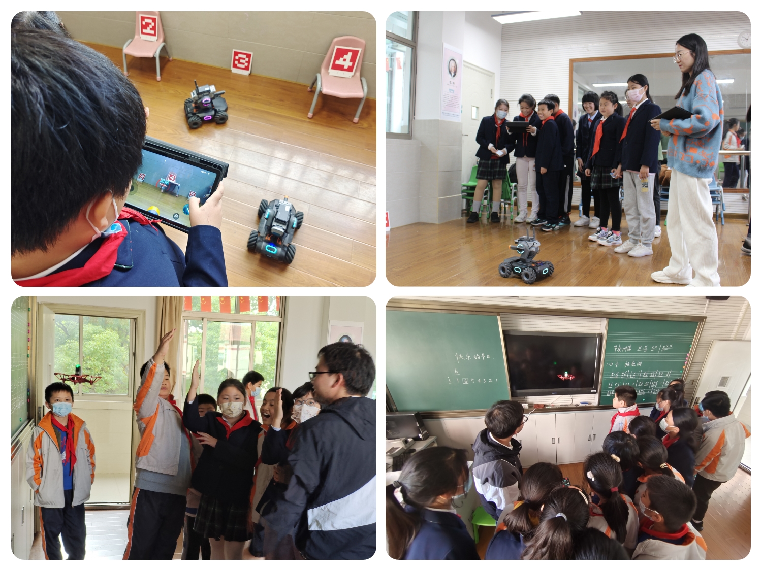 在机器人活动现场,6位教育技术学专业师范生为孩子们展示了“科技感”满满的遥控机器人。在老师的指导下,孩子们轮番指挥坦克瞄准射击,操作无人机飞上飞下,在动手实践中感受到科学的魅力。