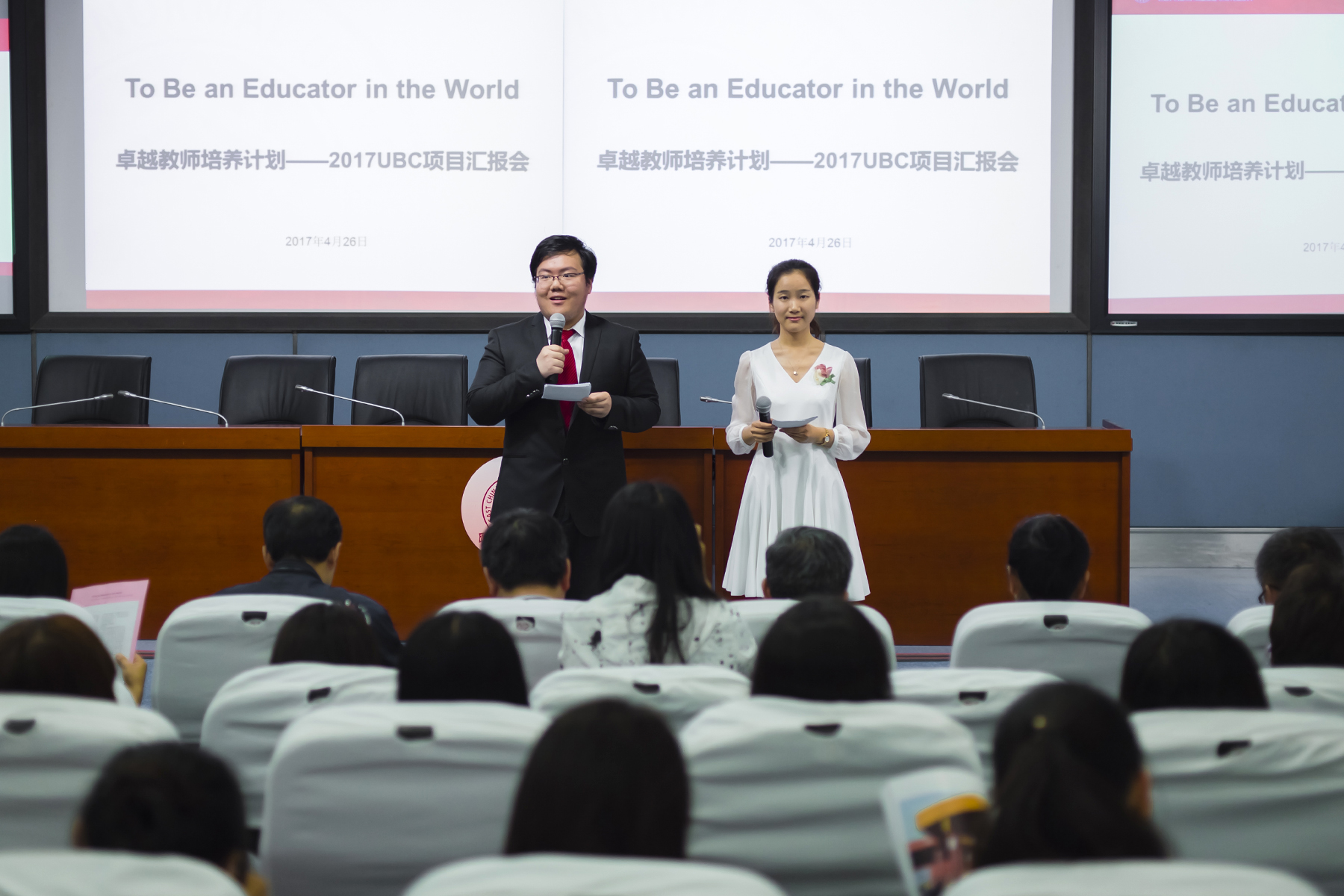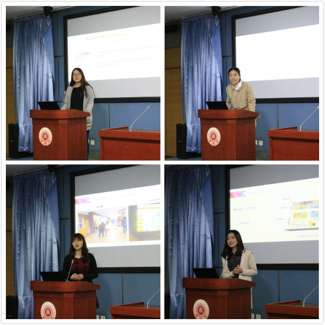 本次汇报会是我校第八期“卓越教师培养计划”2014级免费师范生赴加拿大英属哥伦比亚大学教育学院交流学习的分享汇报。来自汉语言文学、数学与应用数学、英语、物理学、化学、历史、地理科学、特殊教育等12个专业的32名师范生于1月15日至2月5日在UBC教育学院开展为期三周的研修实践,内容涵盖教育学理论和研究、课堂教学、学校管理、教师发展的课程学习,加拿大中小学教育、课程教学、教师培养体系的讲座与讨论交流,以及走访当地学校,实地体验加拿大学校教学模式。