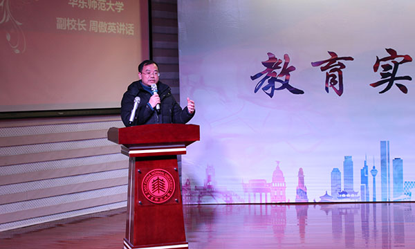 在总结讲话中,副校长周傲英感谢了为我校师范生提供实习机会和尽心指导的全国15省(市)教育实践基地的学校领导和指导教师,感谢为实习顺利开展提供保障的相关院系和职能部门老师,感谢同学们实习期间用心用力的努力,传达了他对师范生的叮嘱。他表示,国家从2007年起实施免费师范生政策,这是国家基于中国教育发展现状赋予华东师范大学的历史使命和责任,华东师范大学前所未有地倾注了方方面面的力量进行了各种教育教学实践探索:一是以卓越教师培养为背景,成功建设13门教师教育国家级精品资源共享课;二是成立教育学部,建设教师教育学院;三是958名师范生在全国各所中学中顺利完成实习,并在东芝杯等教师教育比赛中成绩名列前茅。面对教育部即将出台的教师教育振兴行动计划,学校如何在更高层次的师范生培养上做出引导性的举措是国家赋予我们的使命,也是华师大即将遇到的机遇与挑战。