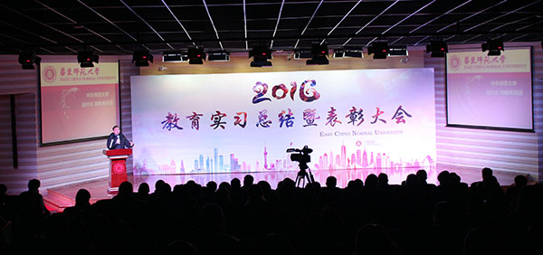 我校2016年度师范生教育实习总结暨表彰大会于1月6日下午在闵行校区大活中心C区报告厅举行。副校长周傲英,教务处处长雷启立、各学部(院系)分管本科教学的院长(系主任)、教务处工作人员、教育实习指导教师以及近50位来自教育实践基地学校的相关负责人和指导教师等总计70余人参加了大会。