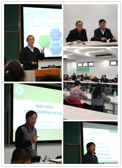 表彰大会结束后,副校长郭为禄、教务处处长雷启立、副处长朱捷、各院系教学院长及大学生科创活动负责人等出席了2015年度本科生创新创业管理工作沙龙。计算机科学与软件工程学院姜宁康、计算中心郑骏、生命科学学院张伟发表做了专题报告,随后与会人员围绕“今年推出的大学生创新创业管理工作的新举措”和“对学校开展创新创业教育工作的建议”两个主题展开激烈讨论。副校长郭为禄表示,工作沙龙是开展创新创业管理工作研讨的重要形式,除了充分解析和推广成功举措外,还要通过工作沙龙发现管理中的问题,并制定相应规范来解决问题。各院系老师纷纷献计献策,既肯定了学校为营造创新创业氛围、服务大学生创新创业工作所做的努力,也表达了对学校出台“给予科创指导教师教学工作量”政策的期冀。对于在本科生培养方案通识教育课程板块通识选修课程系列中增加“创新创业教育系列”的举措,与会老师也纷纷表示支持。