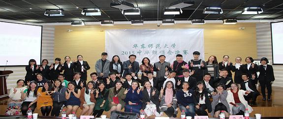 11月11日,2015年中华经典诵读比赛决赛在闵行大活C区报告厅举行。来自中文系、传播学院、计算机与软件科学学院、物理系等十几个专业院系的21位选手参加了决赛。决赛邀请教务处副处长朱捷、中文系周宏老师、社会发展学院李明洁老师、传播学院马力老师以及上海市特级教师王林老师担任本次决赛的评委,来自各个院系的100多名同学观摩了比赛。