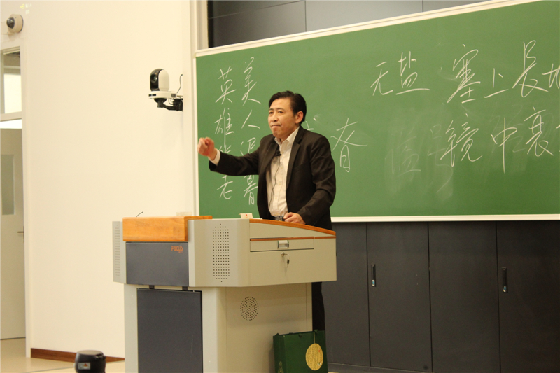 我校中文系周圣伟副教授作了《贺新郎•同父见和再用韵答之》的课堂教学展示,并同与会教师进行了教学上的简短交流。周圣伟老师认为,《大学语文》是一门全校性的公共课,因而承担《大学语文》教学的高校教师,必须具有广博的知识和深邃的思想,能够启发并引领学生进入语言文字的海洋,体会和品味优秀文学作品的魅力。教好《大学语文》,与教师的个人经历和情感体验也是分不开的,不能仅从字面意义上理解文学作品,而是要深入作者的内心,只有切身感受了、体会了,才能与作者产生共鸣,才能谈得上真正理解了作品。《贺新郎》中“老大那堪说”这短短五个字,被周圣伟老师解读出了苍凉遒劲之感,在座教师和学生全情投入到听讲过程中,跟随讲解,细细品味了辛弃疾胸怀大志却报国无门的一生。