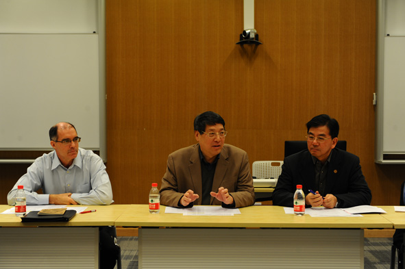 首先,华东师范大学教务处处长雷启立介绍青年教师观摩上海纽约大学课堂教学情况。自2013年秋季学期派出第一批8名教师起,已经陆续派出第二批24人,第三批15人,本次是第四批30人。学校领导非常重视本项工作,给予经费和管理等方面的大力支持。由于两校学期时间差异,上海纽约大学本学期课程跨越寒假和春节,因此对青年教师们的付出表示敬意。在寄语即将观摩课堂教学的青年教师时他说道,每一位教师都是一颗种子,希望教师们能在一学期的观摩后将提炼的成果带回华东师范大学的课堂生根发芽。
