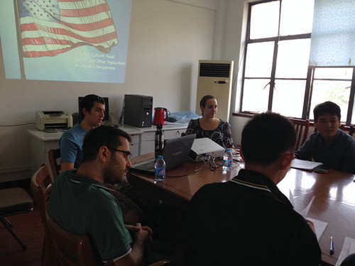 三、 中北校区恳谈室的师生面谈和外教美国文化讲座