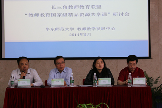2014年5月23日,由长三角教师教育联盟秘书处和华东师范大学教师教学发展中心联合举办的“教师教育国家级精品资源共享课”研讨会在华东师范大学闵行校区召开。华东师范大学党委副书记、副校长任友群,上海市教委政策法规处副处长张慧红,高等教育出版社教师教育出版事业部主任魏振水,华东师范大学基础教育与终身教育处、教务处负责人,以及来自华东师范大学、上海师范大学、南京师范大学、浙江师范大学、安徽师范大学、江西师范大学、杭州师范大学7所高校90余名教师教育国家级精品资源共享课负责人和技术人员参加了本次研讨会。研讨会由华东师范大学教务处处长戴立益主持。