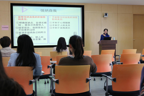 面对日益普遍的大学生心理适应现象,王艳梅老师提出了大学生适应心理调适与发展的几种方式,例如培养自立能力,正确调控自我等,重点讲解了大学生悦纳自我的策略。王艳梅老师向青年教师们推荐了几个简单易用的判断学生的心理状况的小测验。